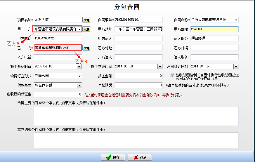 備注:雖然工程款是甲方給的乙方B,乙方B又給的我公司,但是收款單的往來單位是甲方而不是乙方B