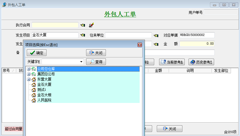 2.4.3設置項目隱藏前查看單據列表,我們以外包人工單為例,如下圖
