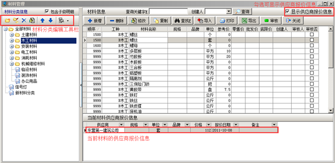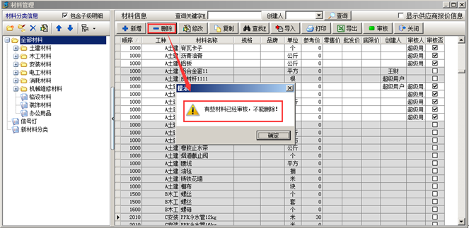 工程項目管理軟件中基礎信息—材料維護(審核)