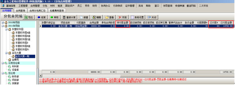 和分包商:“第一建筑公司”簽訂了“屏蔽殼體”的安裝合同,原始金額49000元,先預(yù)付款30%,中間發(fā)生過一次合同變更(增加了600元)。完工驗(yàn)收后支付到95%,另外5%為質(zhì)保金。