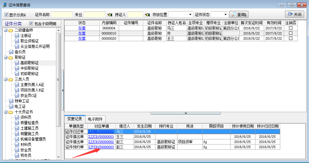 如下圖所示:證件管理的所屬部門已經由[項目部]變更為我們剛剛修改的[市場部]了