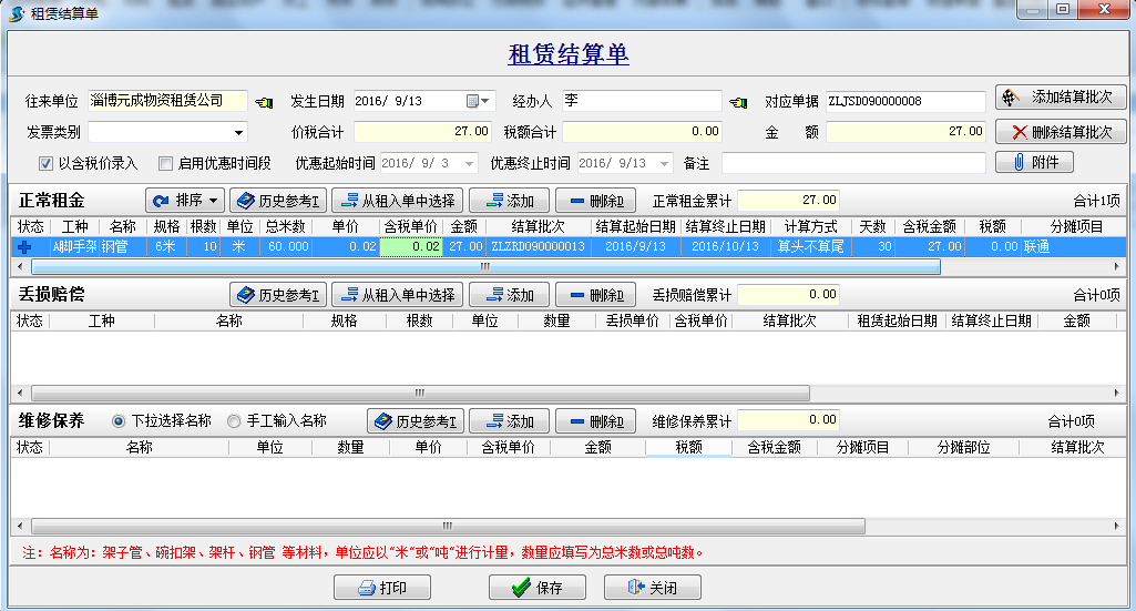 工程項(xiàng)目管理軟件在租賃過(guò)程中經(jīng)常會(huì)發(fā)生以下情況:如租賃十根6米的鋼管,使用過(guò)程中有一根因?qū)嶋H需求損耗了0.5米 需要給予對(duì)方賠償