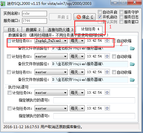 2、自動備份:選擇計劃任務→添加備份的數據庫和日期