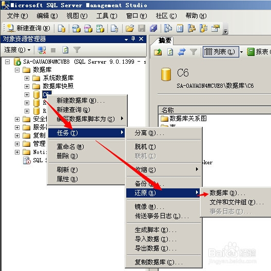 3、雙擊數(shù)據(jù)庫,右擊數(shù)據(jù)庫名,然后鼠標(biāo)移動(dòng)到任務(wù),點(diǎn)擊備份