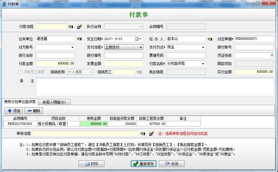 項目實(shí)施過程中經(jīng)常會有掛靠資質(zhì)施工的情況,在施工過程中我們需要關(guān)注掛靠單位的經(jīng)營狀況,如:在采購材料時是否根據(jù)預(yù)算(有無偷工減料情況),項目資金收支是否足額可以發(fā)放現(xiàn)場的工資,余額不足時需要墊資等。我們根據(jù)調(diào)研總結(jié)部分客戶實(shí)際情況,工程項目管理軟件給予解決方案如下: