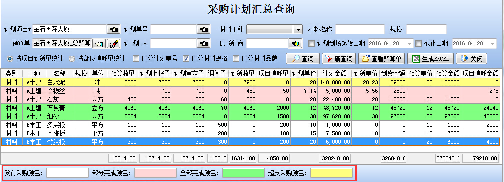 可實時查詢項目的預算量、計劃上報量、計劃審定量、總庫調入量、采購到貨量、項目消耗量,六種數據的動態變化。