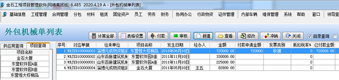 在填報了基礎信息之后,需要打開管理外包設備的基礎單據(jù)-【外包機械單】。