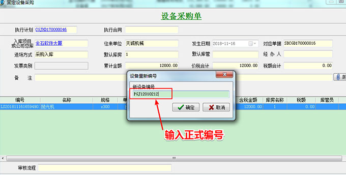 當設備參與項目使用后,可以生成正式編號,以便長期使用。