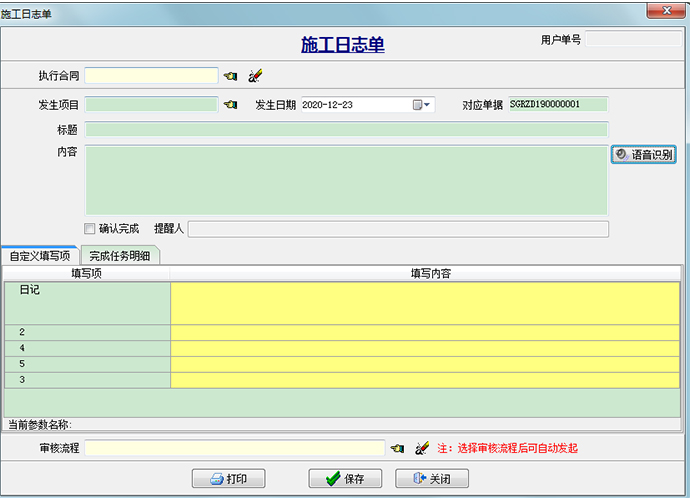 施工日志是施工方用于記錄工程項(xiàng)目真實(shí)情況,反饋一線信息的重要資料,也是施工管理軟件中進(jìn)度來源,金石軟件的施工日志模塊為每個(gè)任務(wù)提供明細(xì)反饋,并根據(jù)工地的實(shí)際情況,設(shè)計(jì)了語音識(shí)別功能,用戶可以通過語音簡(jiǎn)述項(xiàng)目情況,語音自動(dòng)識(shí)別為文字,減輕了工作量和工作難度。