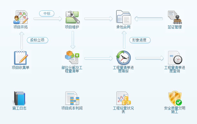 金石機電工程項目管理軟件針對機電工程、安全、消防等細分領域的管理特點,以項目實施過程為主線、以供應鏈管理為重點、以成本控制為目的,全面管理計劃進度、物料采購、合同資產、售前和售后跟蹤、職工、專業分包、勞務人員和辦公室協調等項目實施的各個領域。機電工程項目管理軟件以項目管理知識結構為基礎,融合了多家系統集成企業監管的精髓。