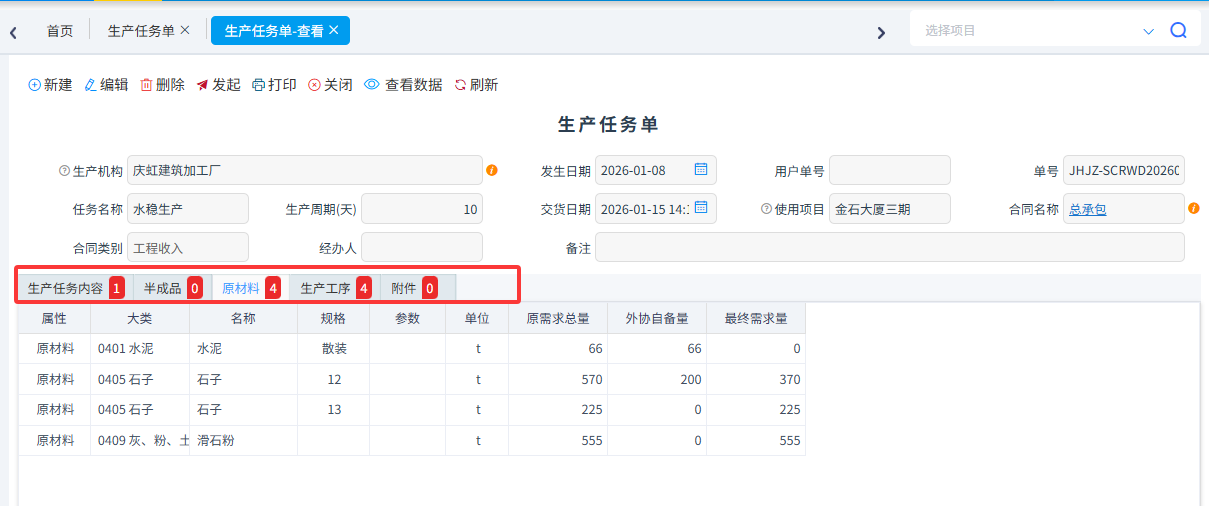 需求購(gòu)買(mǎi)原材料,在材料管理-材料采購(gòu)訂貨單中可以直接調(diào)取生產(chǎn)任務(wù)單中材料數(shù)量。