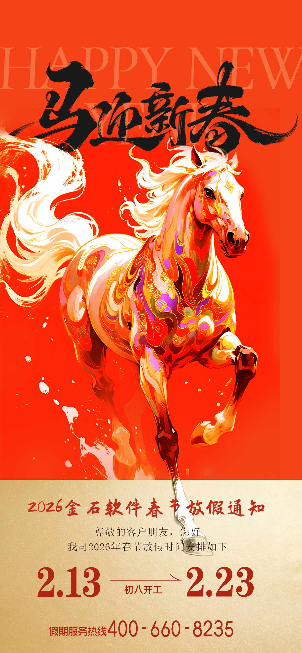 辭舊歲,馬踏祥瑞;迎新春,金石獻(xiàn)禮。值此農(nóng)歷丙午馬年來(lái)臨之際,金石軟件全體員工向您致以最誠(chéng)摯的節(jié)日問(wèn)候!