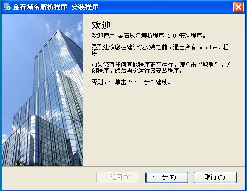 找到 金石域名解析程序安裝.exe 開始安裝域名解析程序。如下圖: