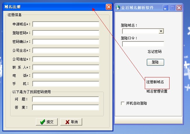 安裝完成后,在桌面打開快捷方式,在彈出的對話框中注冊新域名。然后使用新域名登陸。