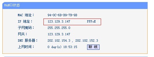 登陸后,會自動顯示當前外網(wǎng)的ip地址,如下圖: