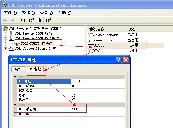 路由器中不映射Sqlserver2005默認的1433端口,映射Sql2005的動態(tài)端口。動態(tài)端口的查看方法如下圖: