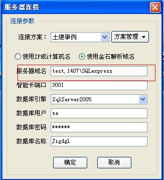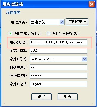 如果使用的Sql2005動態(tài)端口,或在路由器設(shè)置了外部端口,要在域名后面加端口號,如下圖: