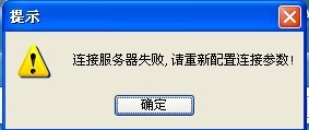 故障一、新裝客戶端無法訪問服務器,彈出錯誤提示:“連接服務器失敗,請重新配置連接參數(shù)”:如下圖: